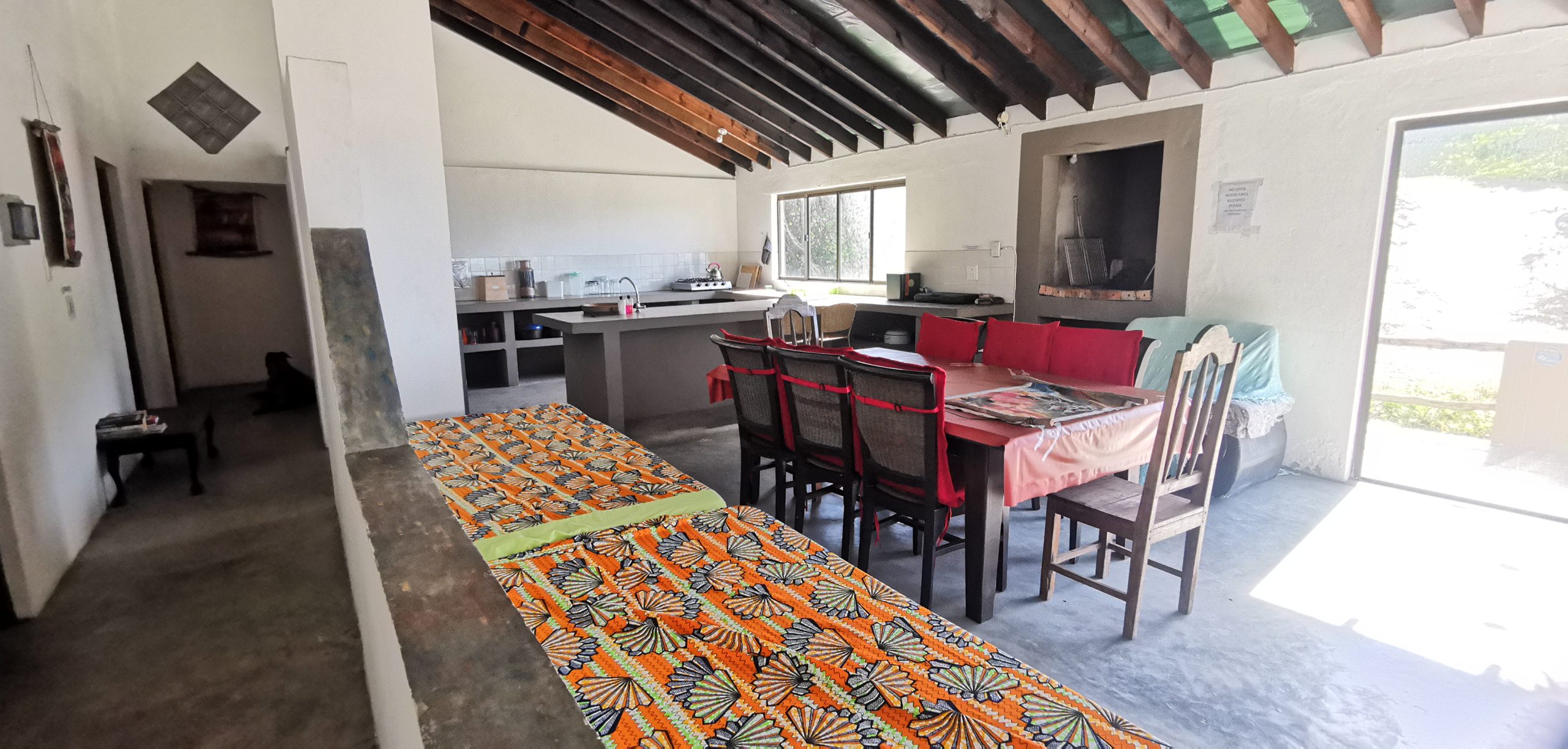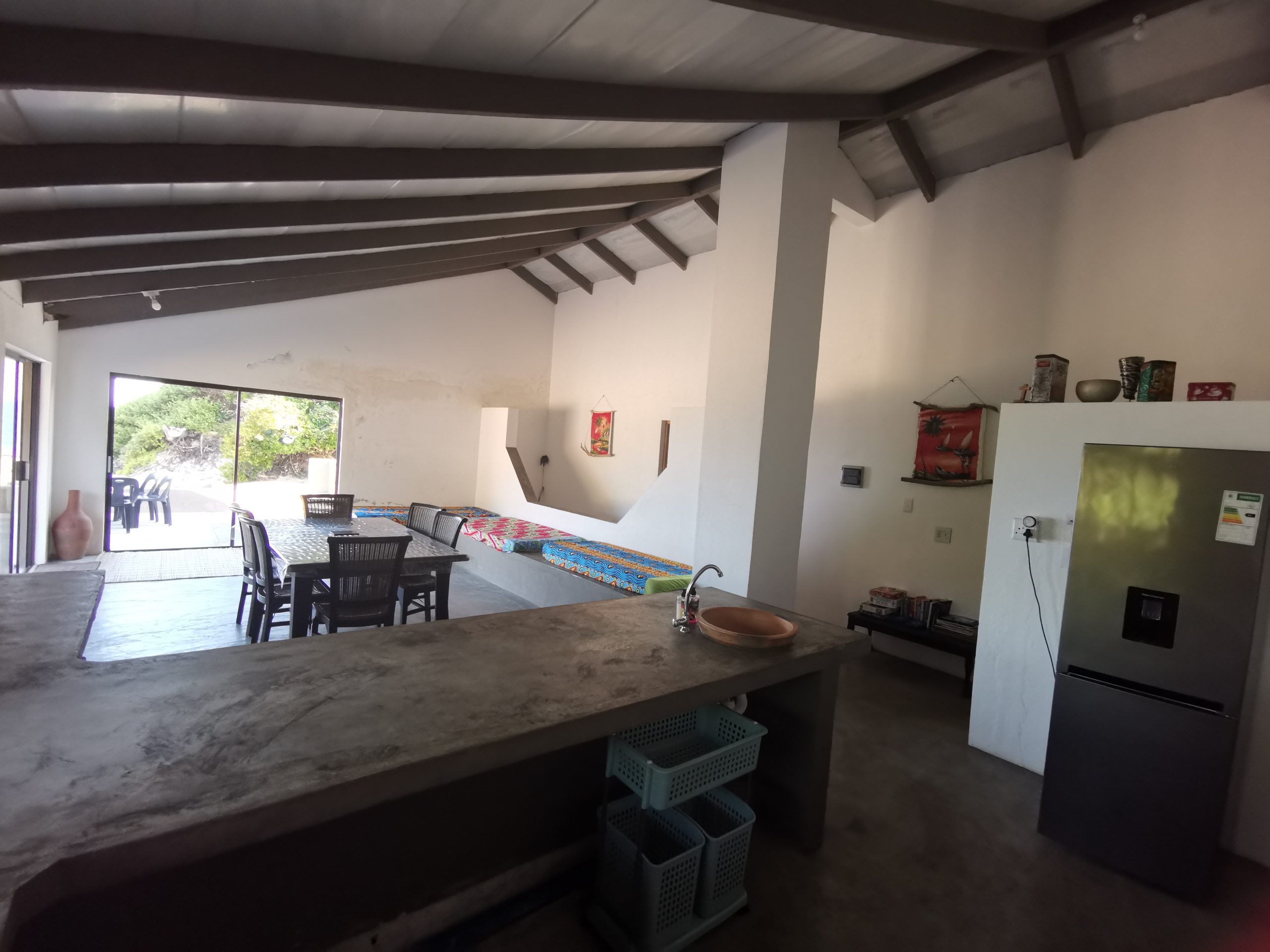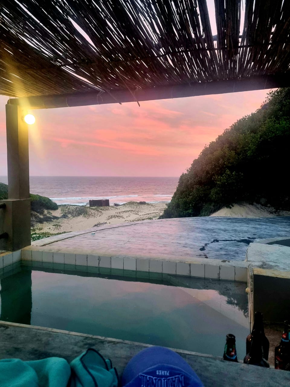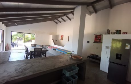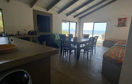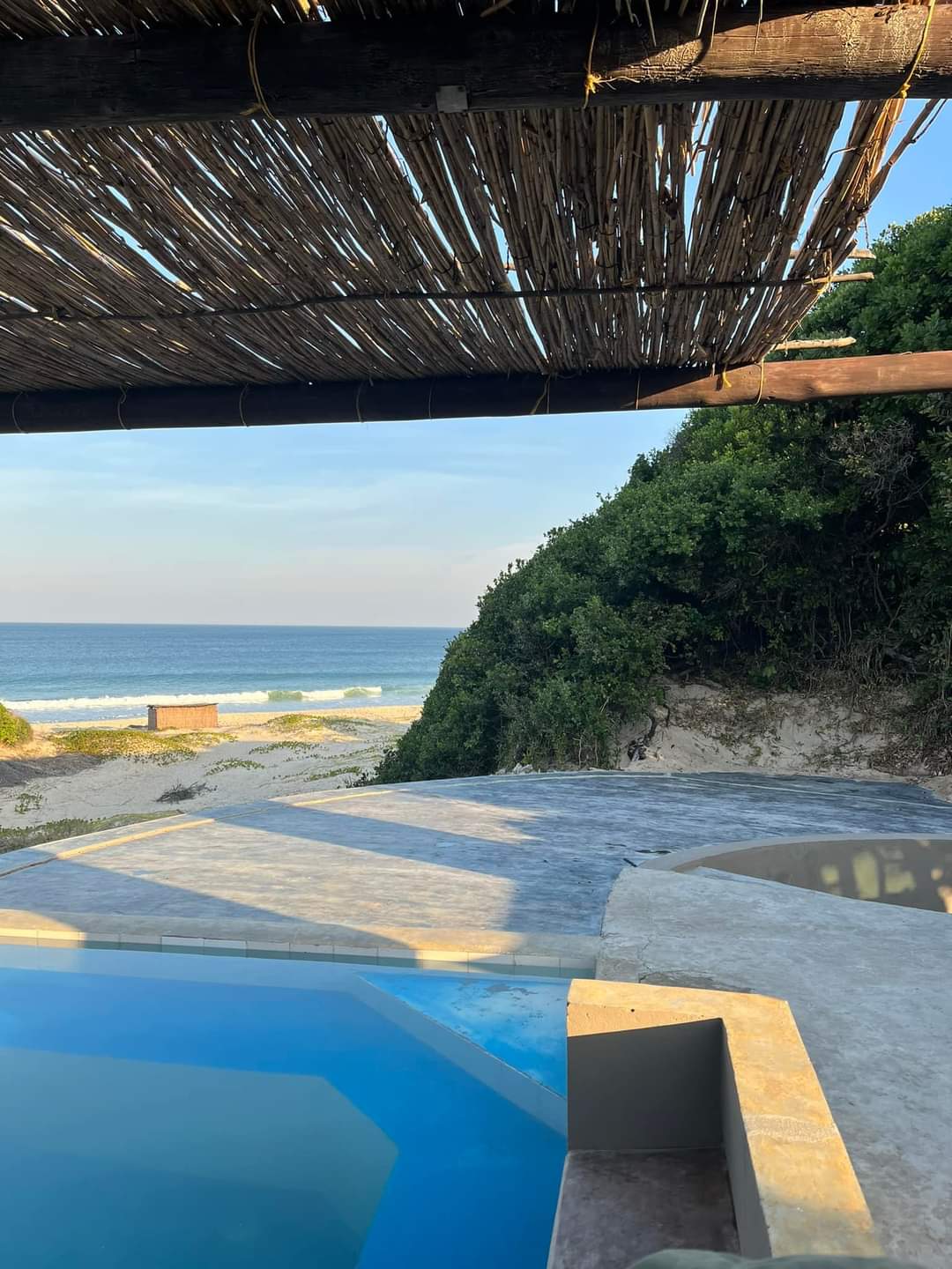 This 4 bedroom, 2 bathroom self catering holiday beach house has its own private splash pool and is 100m from the beach with magnificent sea views. Sleeping a minimum of 8 people and maximum 15 – 18 people. There are 4 double beds & 7 single beds. 3 single bed bunks in the living area. Large open plan, self-catering equipped kitchen/living area with 4 plate gas stove, fridge freezer facilities and a built-in braai. Patio doors opening up onto a stoep with private splash pool and magnificent beach and ocean views. This secluded and safe beach resort is ideal for the family break away or the adventurer.